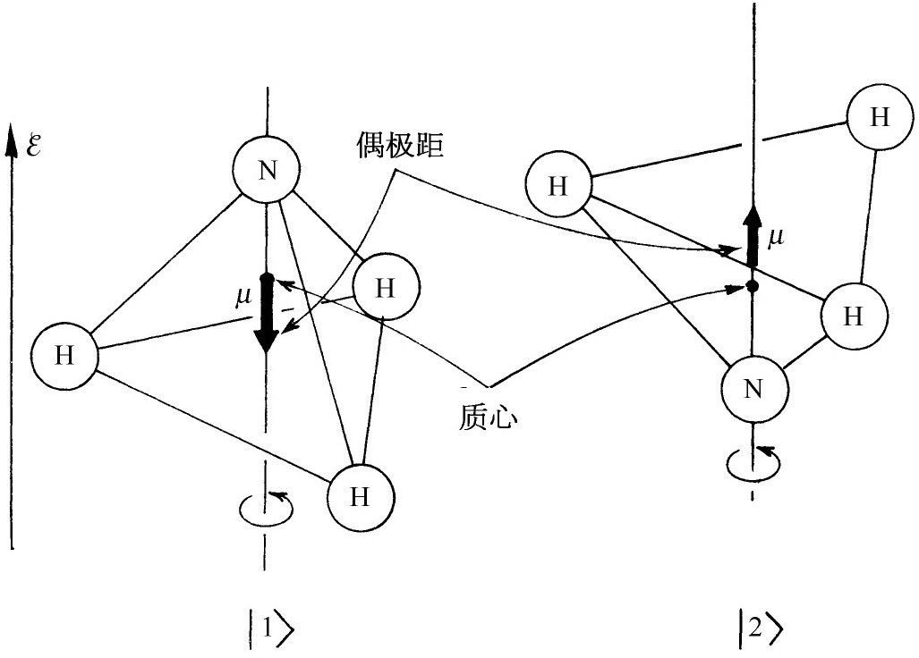 当氮原子由一边翻转到另一边时,质心并不移动,但电偶极矩反转。由于这个偶极矩的存在,分子处在电场