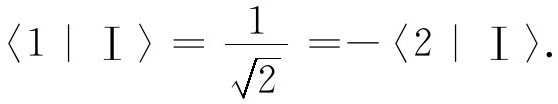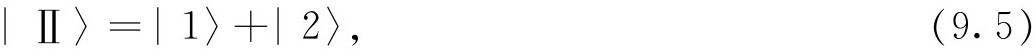显然这正好是1,因为|1〉及|2〉是基础态。态|Ⅱ〉处在态|2〉的振幅也是1,所以态|Ⅱ〉是一个在两个基础态|1〉及|2〉中具有相等振幅的状态。