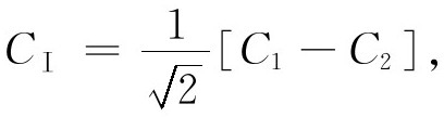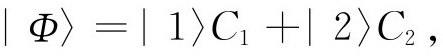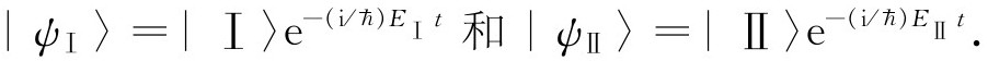 任何状态都可用|1〉及|2〉的线性组合表示——系数为C 1 与C 2 ,或者用确定能量的基础态|Ⅰ〉及|Ⅱ〉的线性组合表示——系数为C Ⅰ 与C Ⅱ 。于是