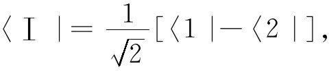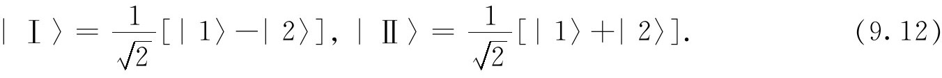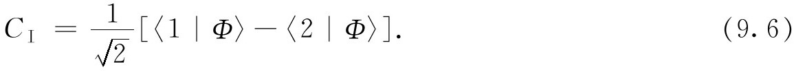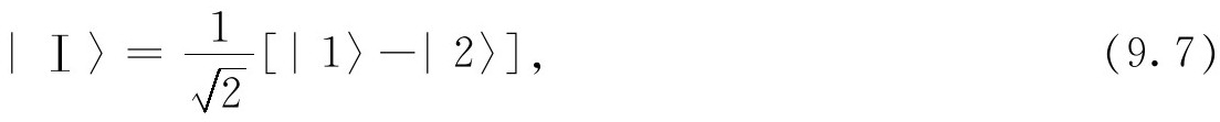 这个振幅是态|Φ 〉在一个新态|Ⅰ〉上的投影,这个新态处在态|1〉的振幅与处在态|2〉的振幅差一符号。即式(9.6)的意义与下式相同: