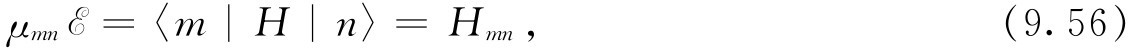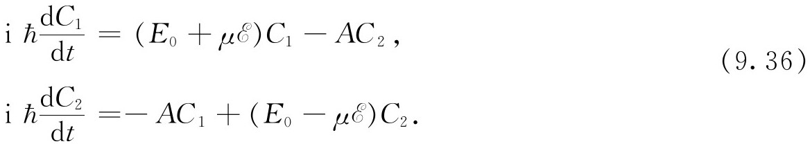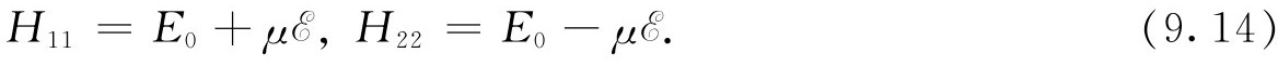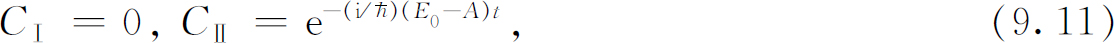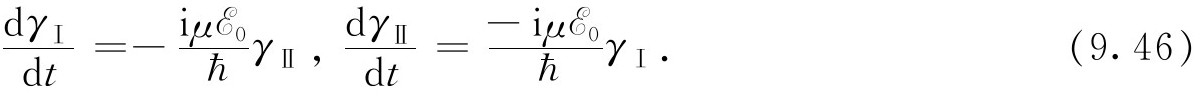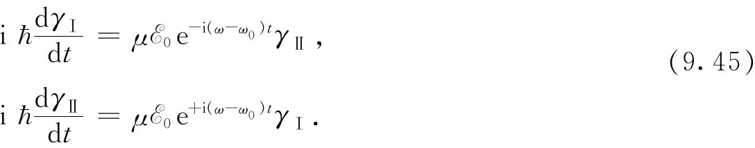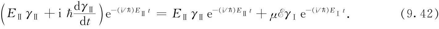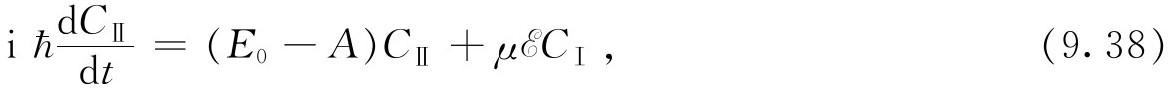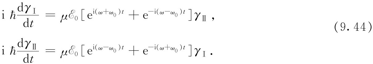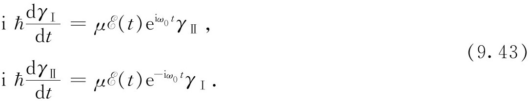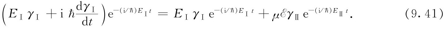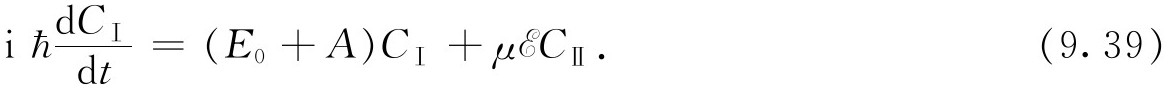 作为耦合项也出现在式(9.38)及(9.39)中,就是它引起原来是定态的两个状态|Ⅰ〉与|Ⅱ〉之间的跃迁。换句话说,对于我们所考虑的小的
