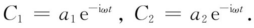 由于这些是常系数线性微分方程,我们总可找到依赖于变量t 的指数函数的解。我们得先来求对C 1 与C 2 两者来说有相同时间相关性的解;可以用尝试函数