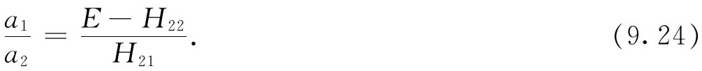 然而,当只有两个方程和两个未知数时,我们无需这种深奥的概念。两个方程式(9.20)与(9.21)中的每个都给出两个系数a 1 与a 2 的比,这两个比必须相等。由式(9.20)有