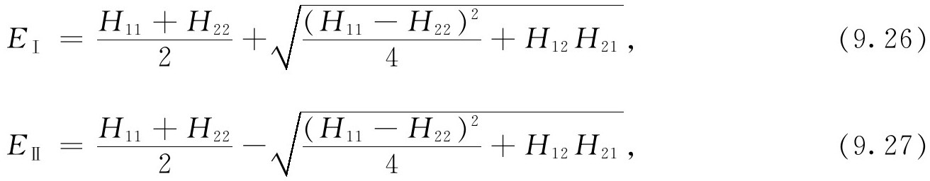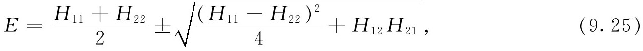 这与解式(9.22)得到的结果相同。不论哪种解法都得到一个E 的二次方程,它有两个解