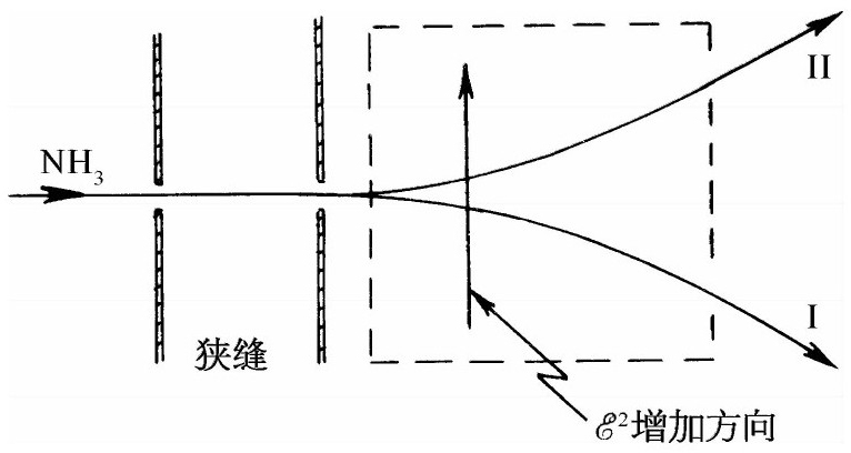 总之,态矢量|Ⅰ〉|及|Ⅱ〉是一对基矢,它们适合于描写氨分子的确定能量的状态。它们与我们原来的基矢的关系是