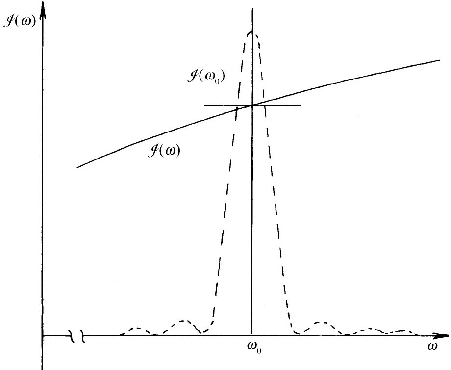 通常照射在这样一种系统上的光并不是严格单色的。因此,值得再求解一个问题——就是计算光的频率分布在包括ω0