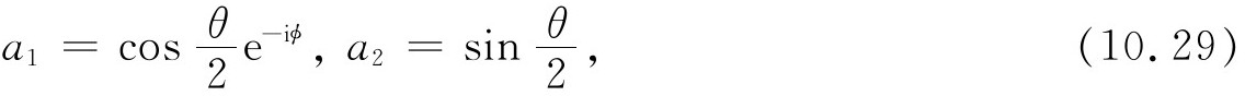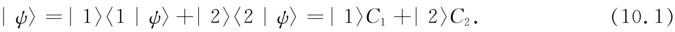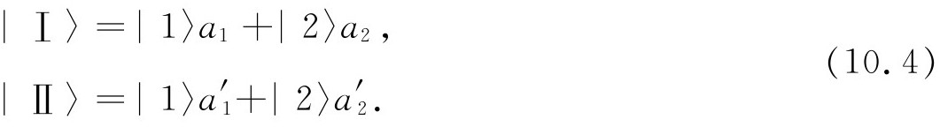 为方便起见,我们总结一下第9章中重要的方程式。设原来选取的基础态是|1〉及|2〉。那么任何态|ψ 〉可以表示为如下的线性组合
