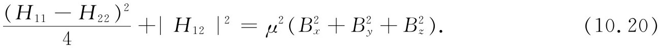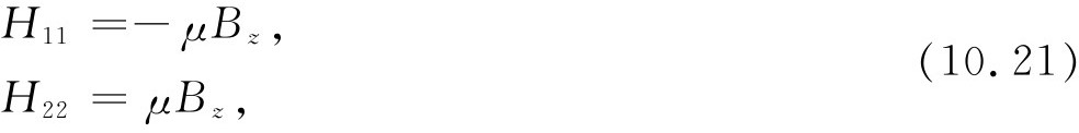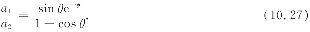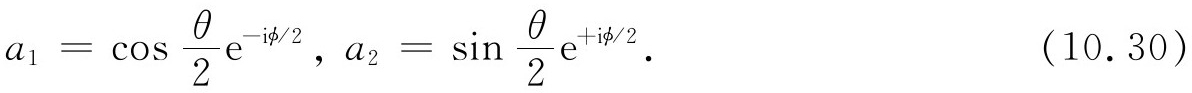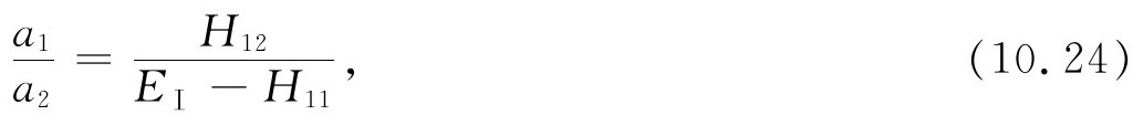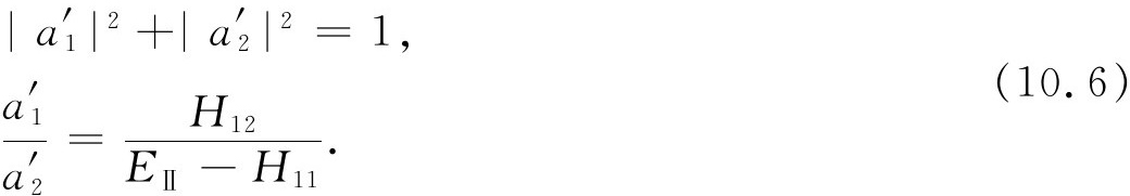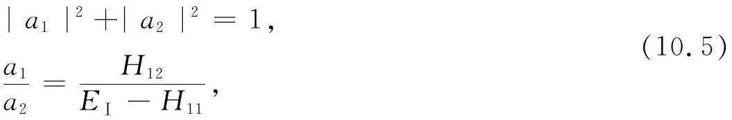 一个附加条件是a 1 与a 2 应当归一化,使|a 1 |2 +|a 2 |2 =1。从式(10.22)中取出H 11 及H 12 ,并利用