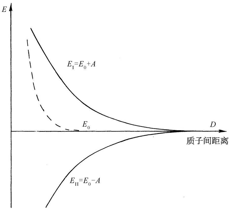 由于这个过程产生的能量偏移正比于振幅A ,A 即能量为-W H (电子在氢原子中的结合能)的电子可从一个质子跑到另一个质子的振幅。