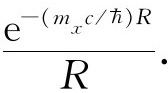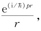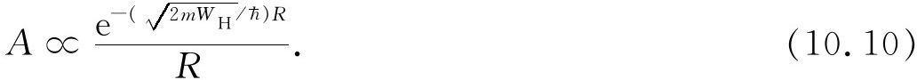 当两个质子的间距离R 较大时,电子在其跳跃过程中必须通过的大部分空间中静电势能都接近于零。因而在这些地方,电子就像自由粒子在真空中那样运动——但带有负 的能量!我们在第3章式(3.7)中已知道,具有确定能量的粒子从一个地点跑到距离r 的另一地点的振幅正比于