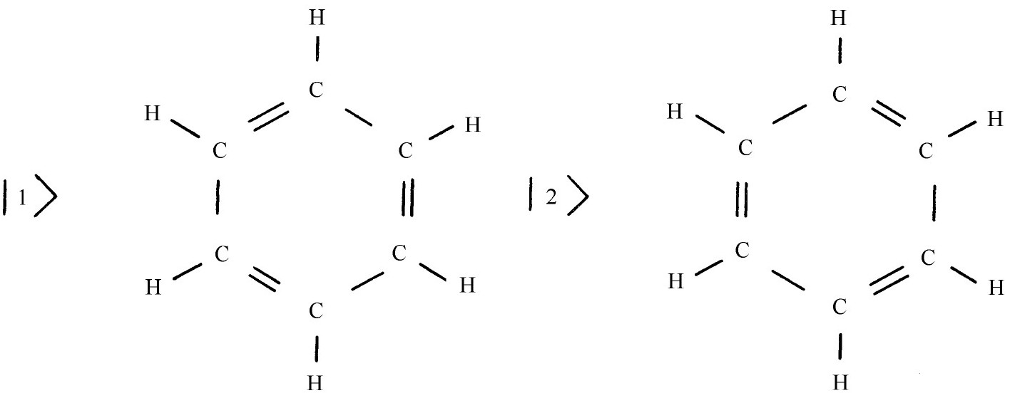 这类化学键联也常称为“量子力学共振”(用我们先前描述过的两个耦合着的单摆作类比)。但这种称呼听起来比事情本身更神秘些。其实,只有当你从对基础态的不恰当选择出发——正如我们也做过的那样,它才“共振”!假如你选了态|Ⅱ〉,你就会有最低的能态——情况就是如此。