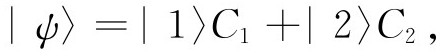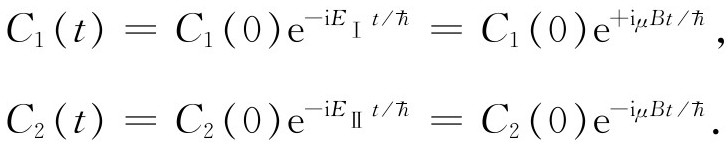 这两种状态的两个振幅C 具有相同的时间的依赖关系。与定态相联系的态矢量|Ⅰ〉及|Ⅱ〉与原来的基础态|1〉及|2〉之间有以下关系