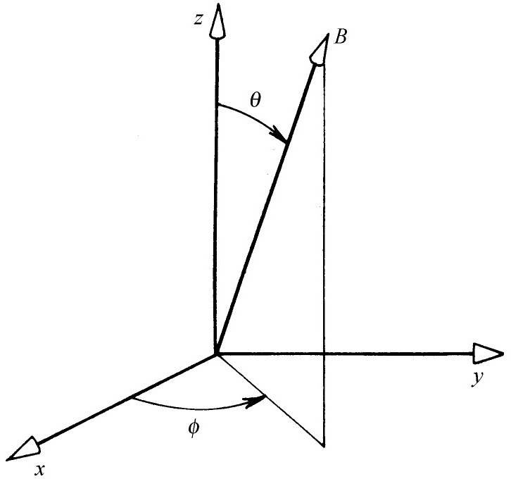 图10-10 B的方向用极角θ 和方位角Φ 确定