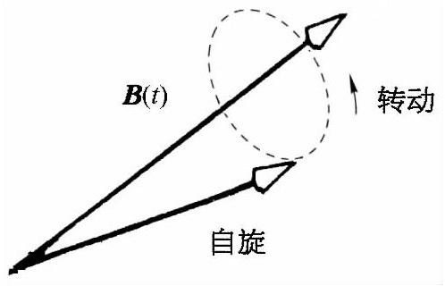 图10-11 在变化磁场B (t )中电子自旋的方向以频率ω (t )绕一平行于B 的轴进动