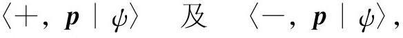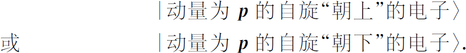 则一个电子的状态|ψ 〉就被完全描述了。式中+和-表示角动量沿某个轴——通常指z 轴——的分量,p 为动量矢量。因此,对每个可能的动量,必定存在两个振幅(一组多重无限基础态)。对单个粒子的描述就是这些。