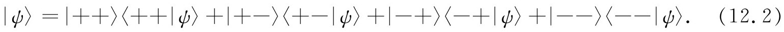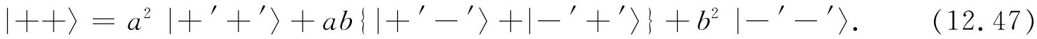 于是我们可以把态|++〉写成如下的线性组合: