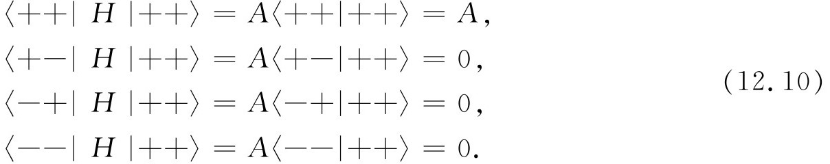 利用稍早一些时候讲过的方法——如果已记住表12-1的话,就很容易了——我们求出每对σ 作用于|++〉的结果。答案为