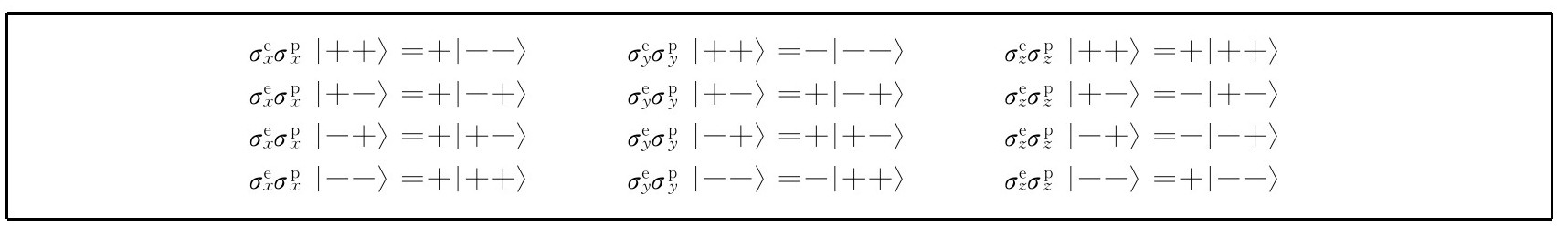 作用于组合态时,它使电子的自旋倒转,而对质子不起作用,再对结果乘以-i。)