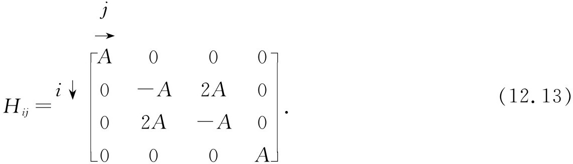 一同用来求出自旋相互作用对能级的影响。为此,我们需要找出与式(12.1)的4个基础态中每一对相对应的16个矩阵元H ij =〈i |H |j 〉。
