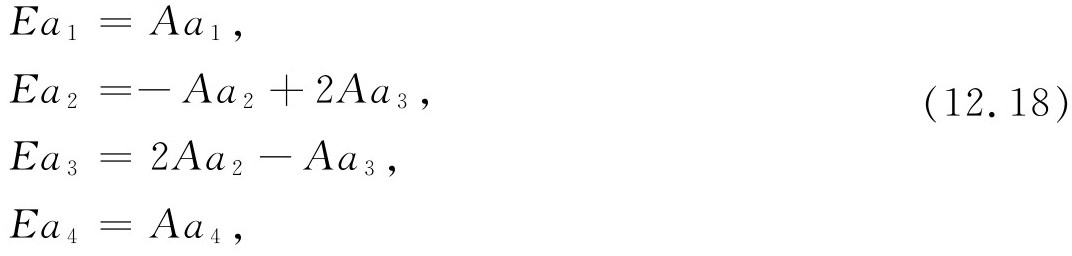 作用于4个基础态的每一个上,我们得到——仍旧利用表12-1——