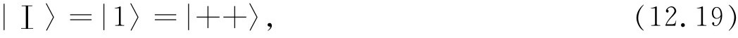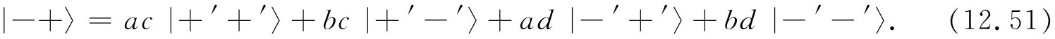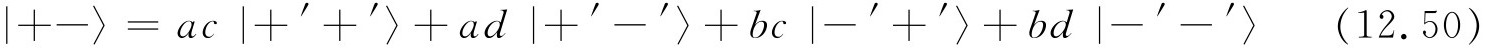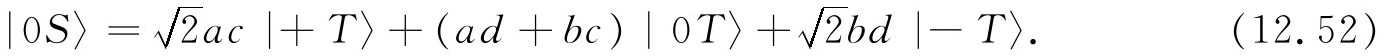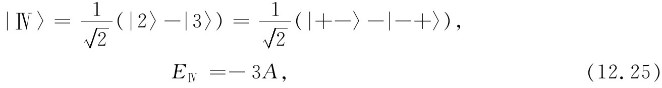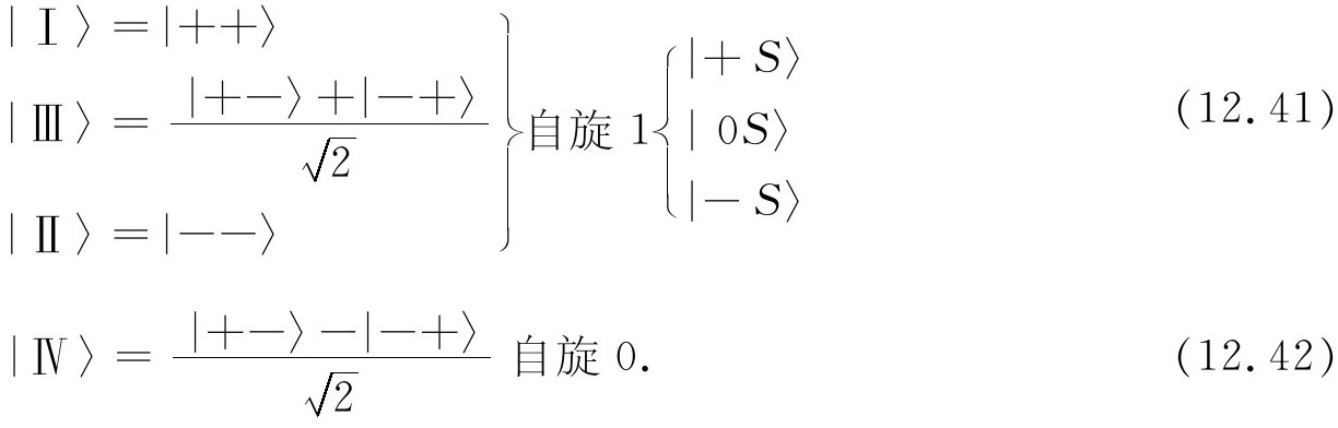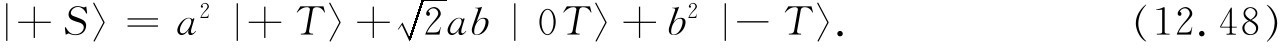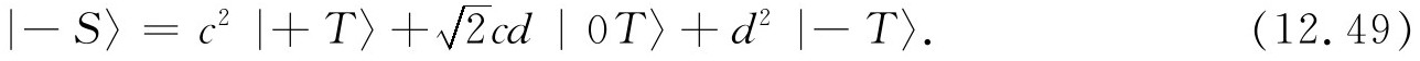 态|Ⅳ〉又是怎样呢?!它是一个自旋零的系统,所以只有一个态——它在所有坐标系中都是相同的 。我们可以通过取式(12.50)和(12.51)的差来核对每一个结果,我们得到: