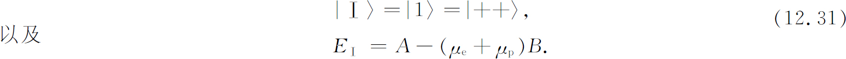 ——很好,因为我们正在描述态|++〉=|Ⅰ〉。仍存在一个表示电子和质子自旋平行时的相互作用能的微小附加项A