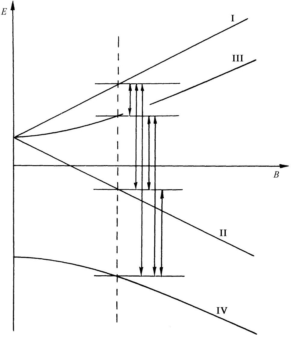 处——在加上弱磁场时分裂成3个不同的能级。对于弱场,能量随B