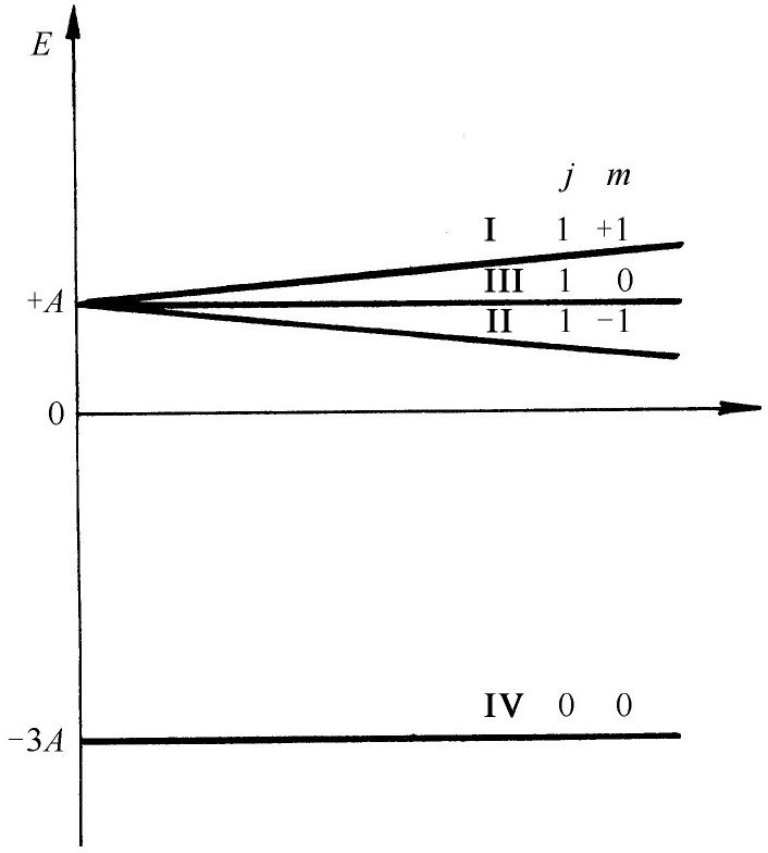 的磁偶极子的力一样。但是态|Ⅲ〉沿直线通过。所以我们正好回到了第5章。一个能量为+A