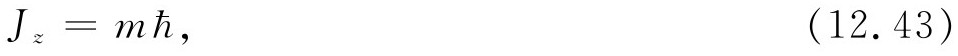 式中m 代表j ,j -1,j -2,…,-j 等数中的一个。所以,你们会看到,人们在书中用所谓量子数 j 和m [j 常称为“总角动量量子数”,m 常称为“磁量子数”]来标记氢原子的4个基态。于是他们把状态表示成|j ,m 〉。而不是写成我们的态符号|Ⅰ〉,|Ⅱ〉等等。所以他们把磁场为零时式(12.41)和(12.42)表示的态写用表12-3中所示的符号标记。这并不是什么新的物理,它只是记号的问题。