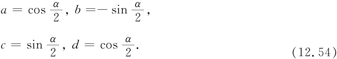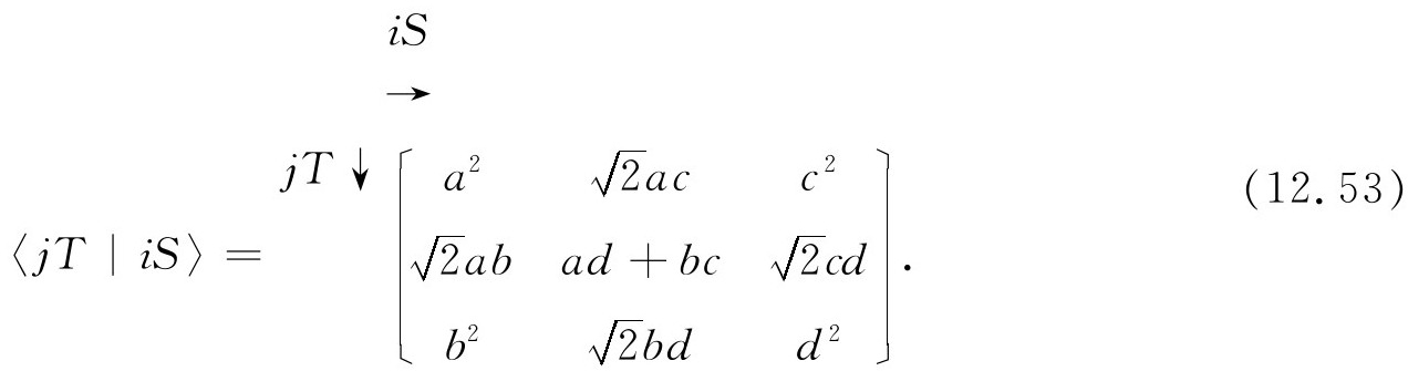 但是,(ad -bc )是自旋1/2矩阵的行列式,所以它等于1。对于两个具有任意相对取向的坐标系来说,我们得到