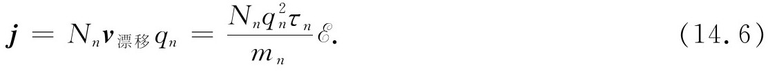 应用式(14.6)给出的漂移速度和电流密度的关系,我们得到