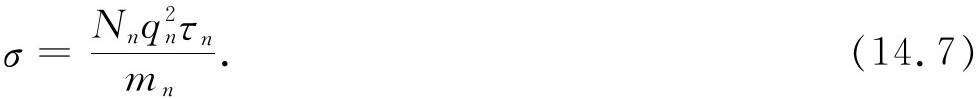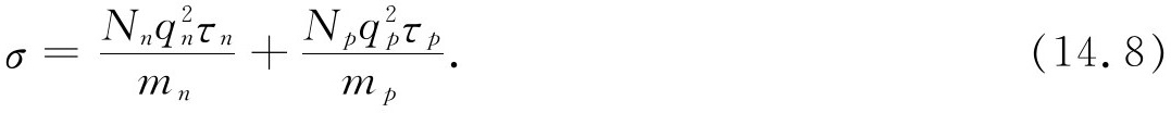 我们可以把完全相同的论证应用于p 型材料,只要改变一下式(14.7)中的参量的数值。假如同时存在的负的和正的两种载流子的数目可以相比较,我们必须把两种载流子的贡献加起来。总电导率由下式给出