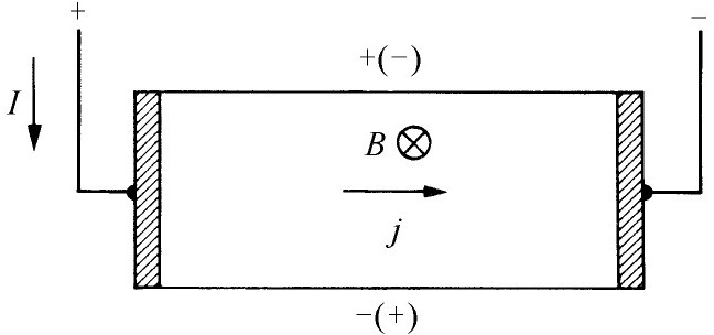 在第一次做此实验时,正像对负的传导电子所预期的那样,人们预期电势差的符号将是负的。因此,当人们发现对于某些材料电势差的符号与预期的相反就感到十分奇怪。这表明载流子是带正电荷的粒子。从我们关于掺杂半导体的讨论中可以理解,n 型半导体应当产生与负的载流子相应的电势差符号,而p 型半导体应当给出相反的电势差,因为电流是由带正电的空穴负载的。