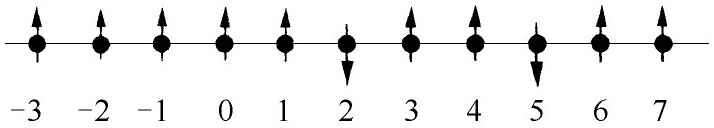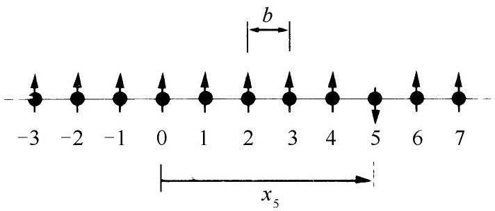 图15-1 一线性排列的自旋体系的基础态|x 5 〉。其中除位于x 5 的一个自旋向下外,其余的自旋都向上