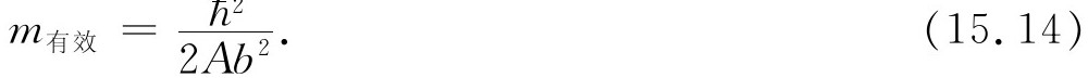 和以前一样,我们可以考虑一个定域的波包(不过其中只包含长波长),它相当于在晶格中某一部分的一个自旋向下的电子。这个向下自旋表现得像一个“粒子”。因为它的能量与k 的关系由式(15.13)描写,这个“粒子”具有有效质量: