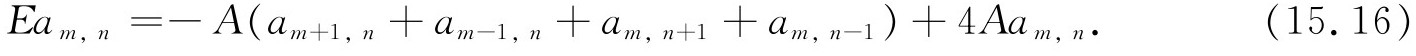 这个方程是正确的,但下面两种情况除外:如果m =n ,则方程根本不存在;如果m =n ±1,则方程式(15.16)中有两项应去掉。我们将不去考虑这些例外情形 。我们暂不理会这些方程中有少数要稍加改动这一事实。毕竟我们假定晶体是无限的,而且我们有无限多项,所以忽略很少几个不会有多大关系。那么作为粗略的一级近似,让我们忘掉那些改动过的方程,换句话说,我们假定方程式(15.16)对所有m 和n ,即使它们相差1也无所谓。这就是我们的近似方法的本质部分 。