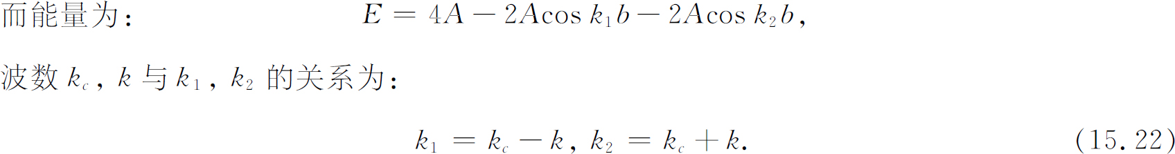 这样我们又得到了与在第13章中已解出的完全相同的问题,不过那里是E 0 而现在是2A 。相应于振幅C n 的解(自旋向下的振幅)是以传播常量k 和能量为