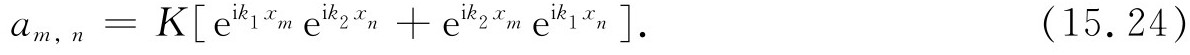至此我们可以想一想,如果我们有两个独立的 、分别对应于k =k 1 和k =k 2 的单 自旋波(如上一节中的情况),将会出现什么情况呢?根据式(15.12),它们具有能量