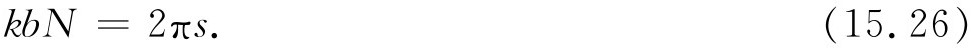 我们现在只要那些每6个原子就重复的解。让我们先讨论N 个原子的环这种一般的情况。如果这个解具有N 个原子长度的周期性,则e ikbN 必定为1,或者,kbN 必定是2π 的整数倍。令s 表示任一整数,于是上述条件为