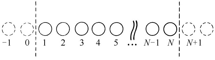 +1提供的任何项。但是,这要假定我们能够得到具有下述性质的无限长线的解:位于原子0处的振幅为零,位于原子N
