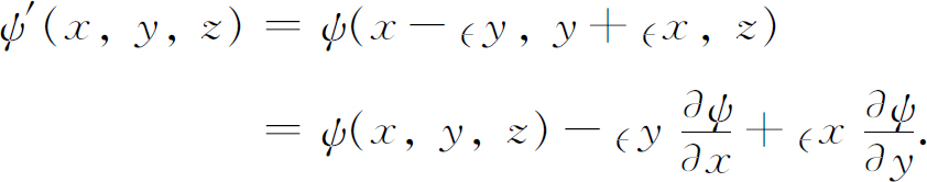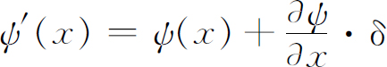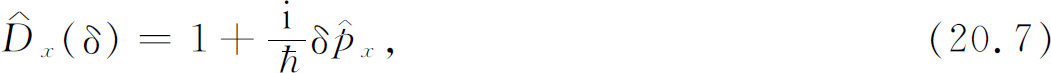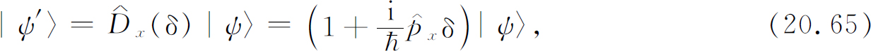 式中δ 是一个小位移。将状态|ψ 〉沿x 移动一小距离δ 得出一个新的态|ψ ′〉,我们说这一新态比原来的态增加了一点新的东西