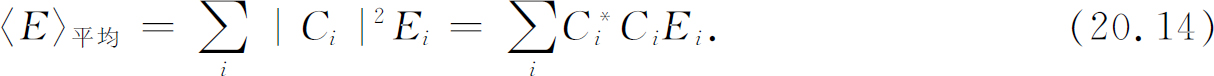 但是,现在如果你对某个非定态|ψ 〉进行测量,那么会发生什么情况呢?既然系统没有确定的能量,因此一次测量将给出一个能量,对处于同样状态的其他原子所作的相同测量将给出不同的能量,等等。对整个一系列的能量测量求平均,你会得出什么呢?