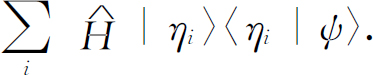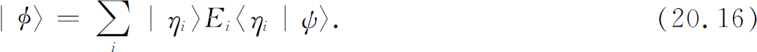 通过把态|ψ 〉投影到一组具有确定能量的态上,我们就能回答这个问题。为了提醒你这是一组特殊的基础态,我们将这些态称为|η i 〉。态|η i 〉中的每一个都有确定的能量E i ,在这个表象中,