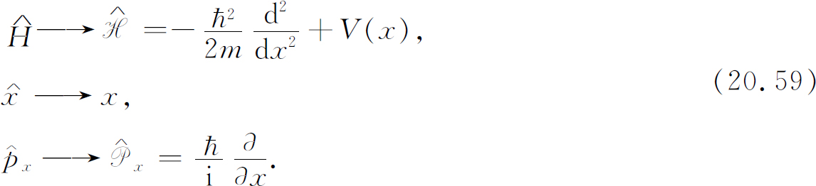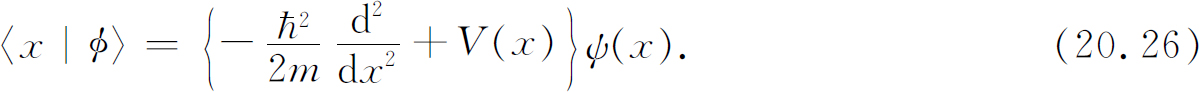 所以式(20.2)是式(20.3)的高级写法。实际上还不止这样,它含有更多的东西。在式(20.2)中我们完全没有提到一组基础态。式(20.3)是式(20.2)在某一组基础态中的映像,但是,如你们所知,你们可以选用你们想要的任意一组态,而式(20.2)就含有这种概念。算符的写法避免了作任意特定的选择。当然,当你想要得到明确的表示时,你必须选择一组基础态 ,当你选定后,你就用式(20.3)。因此算符 方程式(20.2)是代数方程式 (20.3)的更为抽象的写法。这两种写法之间的区别,类似于下面两种写法的差别
