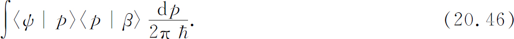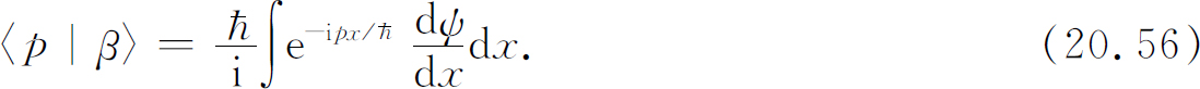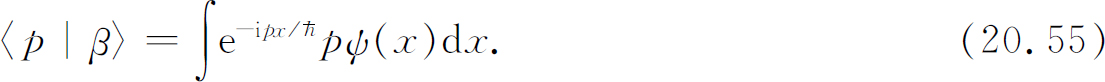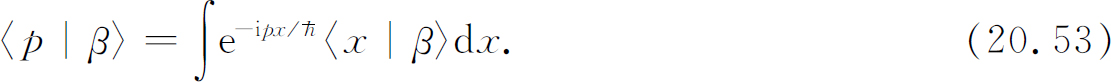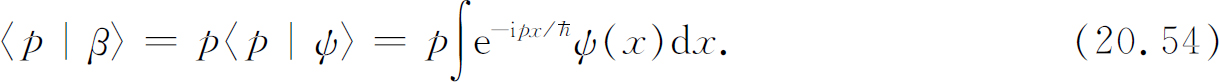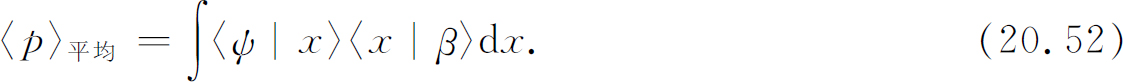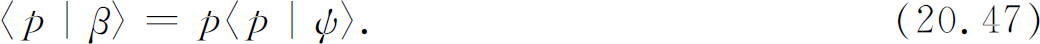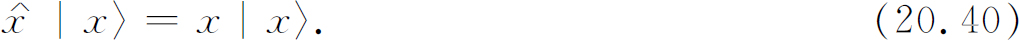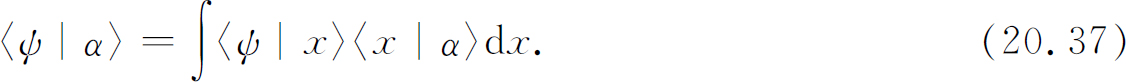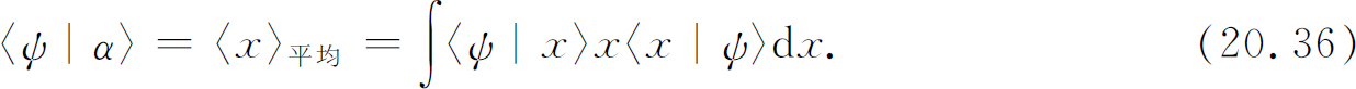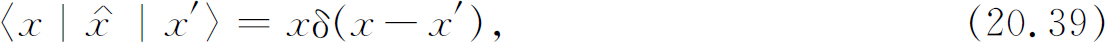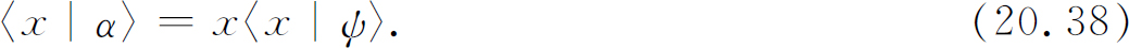 (4) 式(20.38)并不 意味着|α 〉=x |ψ 〉。你们不可以把〈x |当作“因子”提出来,因为在〈x |ψ 〉前面的乘子x 是一个数,它对各个态〈x |都是不同的,它是电子在态|x 〉中的坐标值。参看式(20.40)。